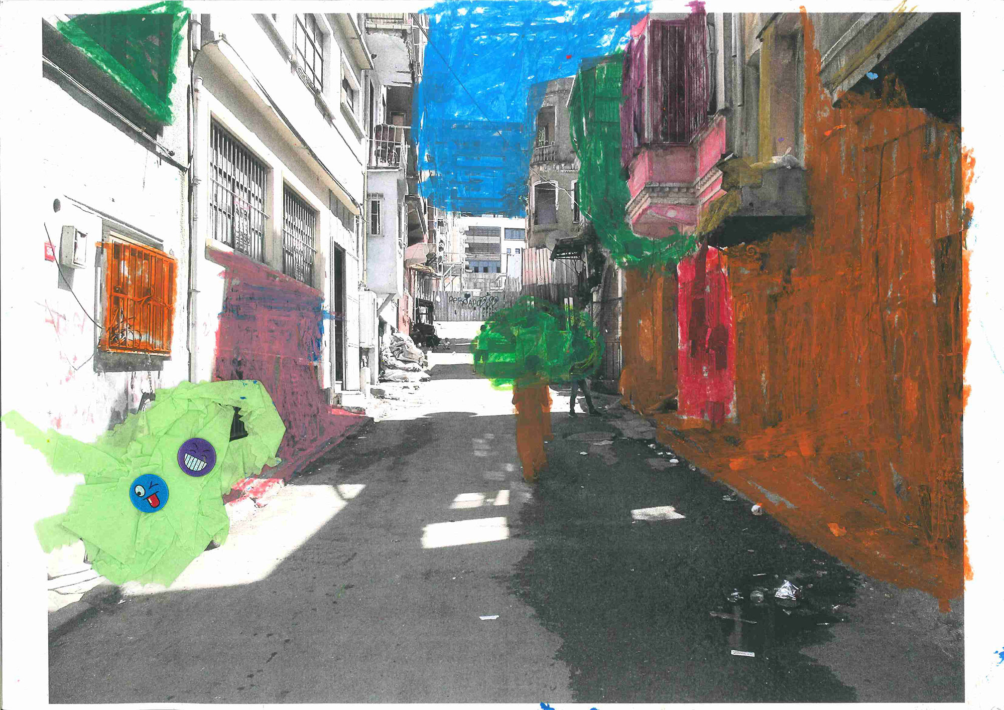 "Kenti/Tarlabaşı’nı Siz Tasarlasaydınız" buluşmasında çocuklar, çektikleri mekan-sokak fotoğrafları üzerinde kolaj çalışmasıyla hayallerindeki Tarlabaşı’nı yeniden tasarladı.